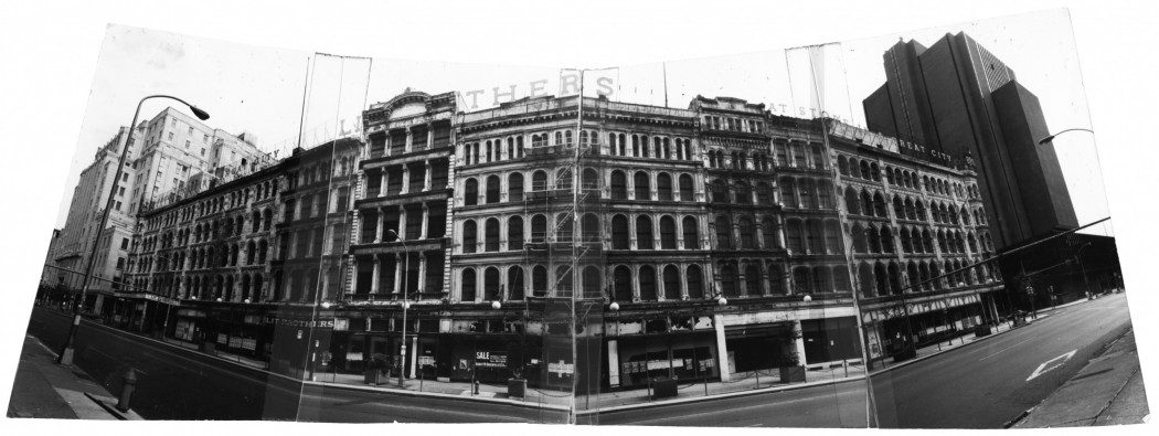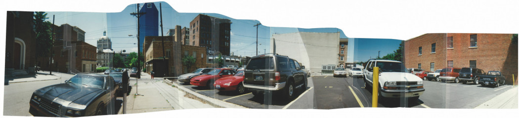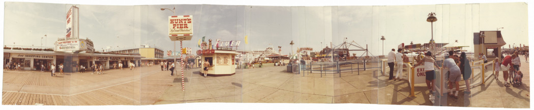 From the early 1970s onward, for over 25 years, Moser produced panoramic composite photographs by taking up to thirty images of a single view and assembling them with scotch or masking tape. On the back, he noted detailed information about the scene and his camera. Beyond their poetic boldness and material uniqueness, these works reveal a clear intent to distort and reinvent reality. By cutting and rejoining photographs, Moser created vertiginous landscapes that collapse in on themselves, challenging the expansive logic of the wide-angle lens and drawing the viewer into a disorienting, almost sculptural experience of space.
