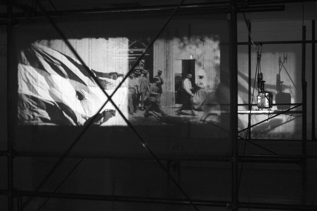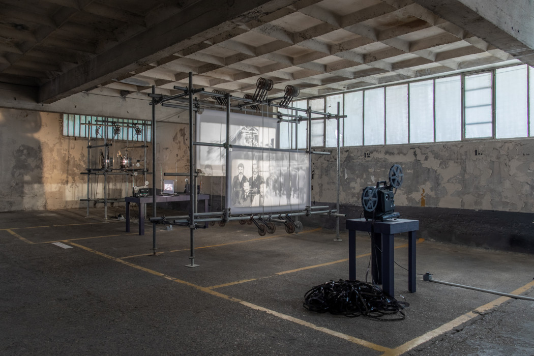 At OFFSCREEN, Andrés Denegri presents “Clamor” (Uproar) (2012-2024), a site-specific film installation bringing together different works from the series “We Were Expected” (2012- ongoing) in an unprecedented way. The work revolves around the origins of cinema associated with the modernist economical project of the Industrial Revolution, of which cinema was both proof and apology. Lumière brothers projections and early Argentinian films interact within a scaffolding machinery, expanding the film, while screens are testimony of a work in progress, evoking Argentina’s failed industrialization process. The works bring together film strips, projectors — ranging from powerful 35mm cinema machines to the fragility of a Super 8 projector, spotlights, shadows, and film bearings. Combined with the environmental sound of the functioning pieces the artwork is an operating machine.