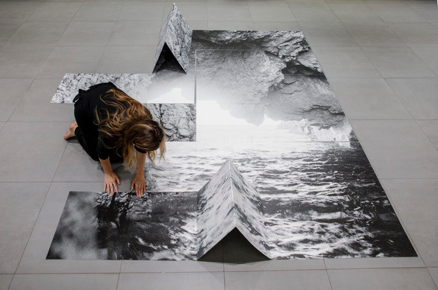 Fold is an installation made up of two double-sided photographic prints, reworked by a series of incisions and folds.