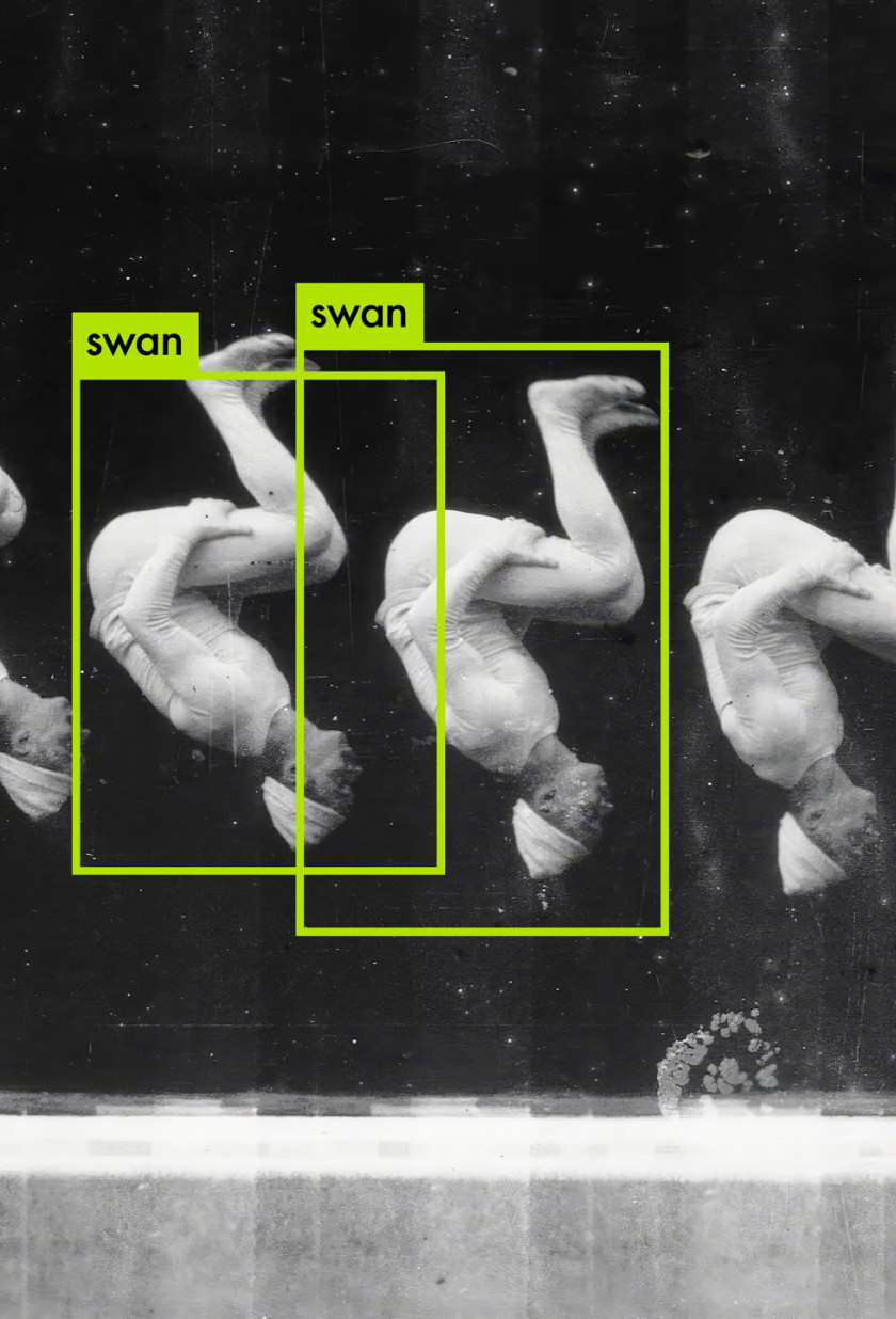 Models of Seeing explores the friction between human vision and AI computer vision models. A collection of historical photographs has been analyzed using YOLO9000, a computer vision model that has been trained using a dataset of 9,000 words and millions of images. What does YOLO9000 see? AI models have a compulsive side; for them, seeing means to project meaning without rest. Labels are automatically assigned and a predetermined worldview is overlapped onto images. This collection of photographs shows glimpses of when this operation fails due to a poetic interference. The goal of data extraction is not achieved and another model of seeing emerges, one in which the meaning of images is not closed but opened up by words.