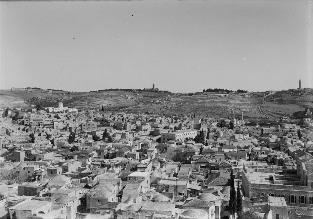 The Labyrinth is an immersive installation built around a 1920 black-and-white photograph of Jerusalem. This historic cityscape shows a diverse architectural identity: Arabic and Ottoman architectures overlap. Domes of mosques, synagogues and church towers line the narrow alleyways placed in front of a peaceful, landscaped valley. A sculptural labyrinth placed in front of the image interrupts any direct view, forcing the viewer to move, shift and confront the impossibility of a single perspective on the city.