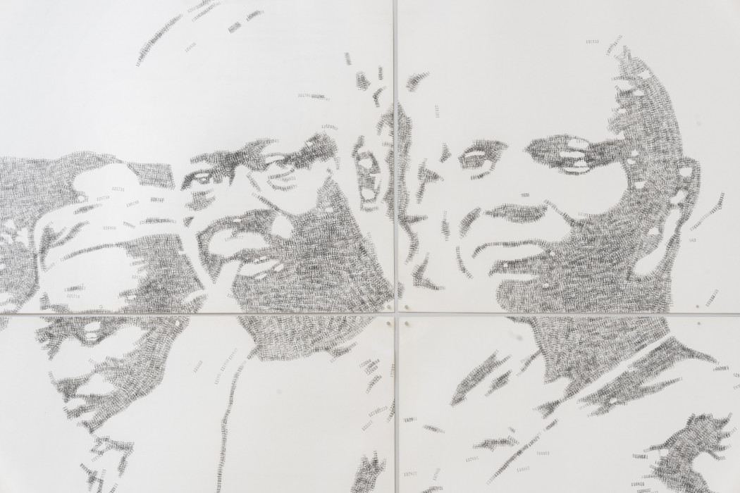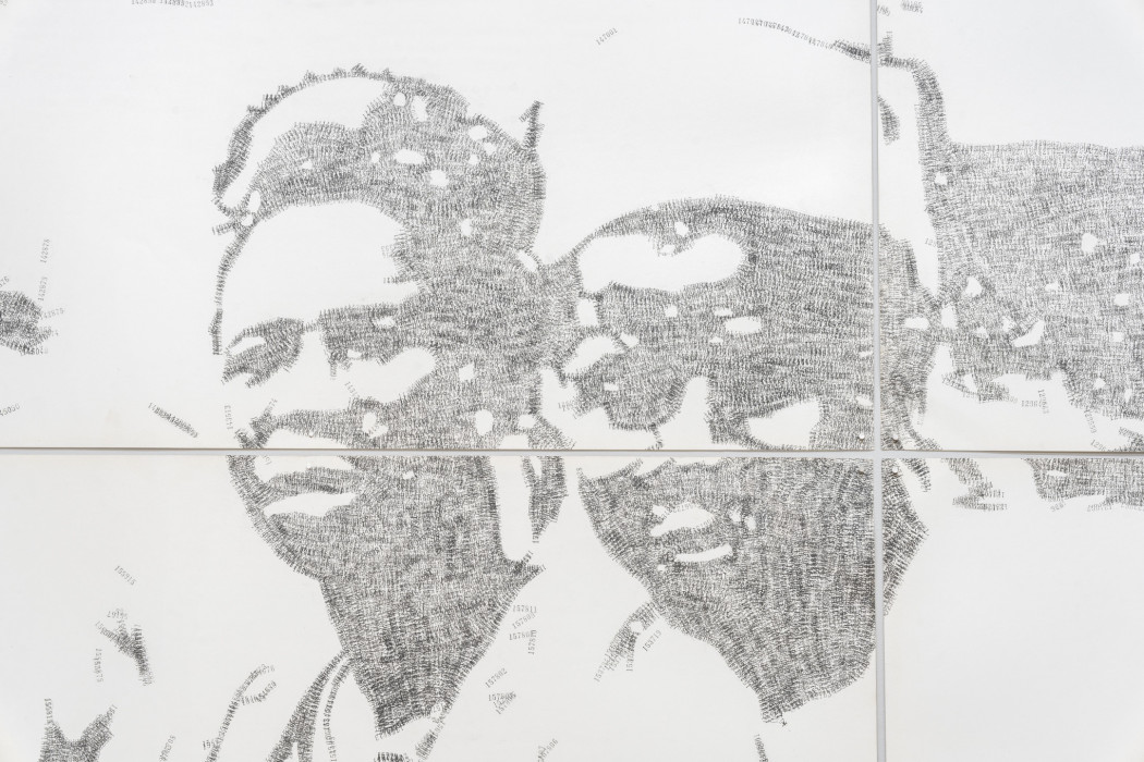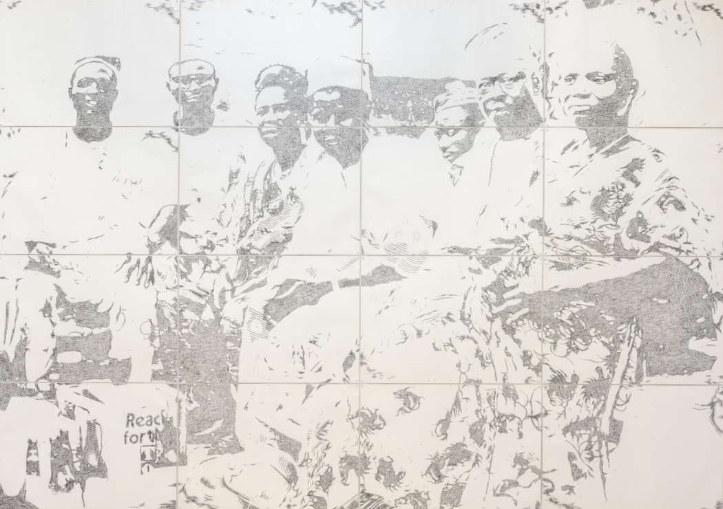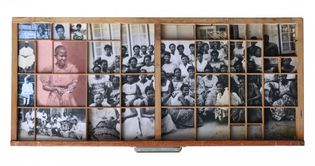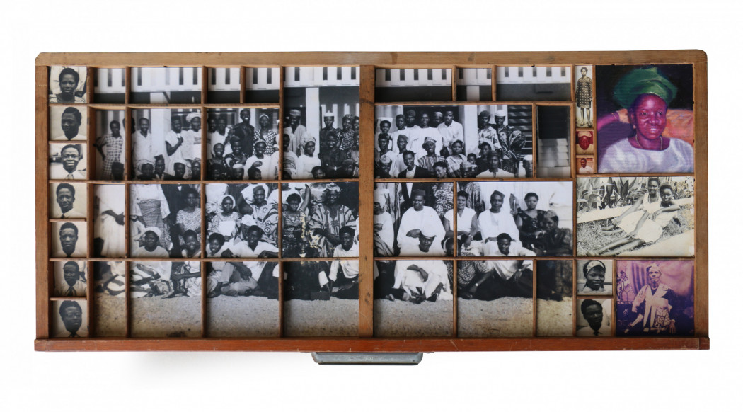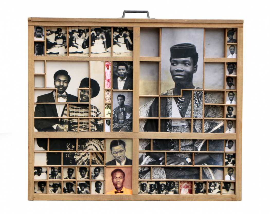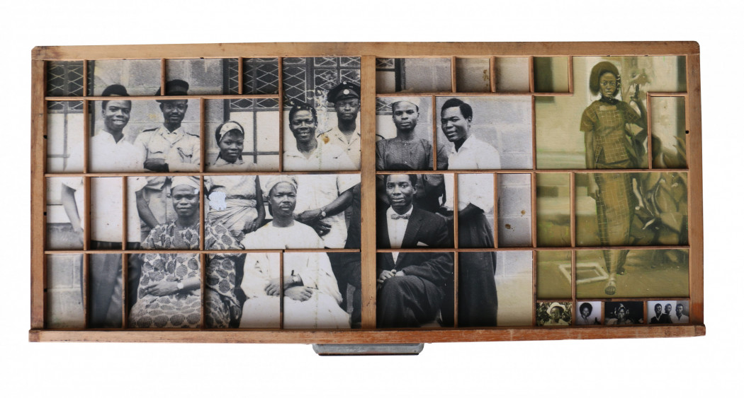 Kelani Abass explores the material heritage and the archive as a link between past and present. In his three-dimensional works “Casting History, Unfolding Layers” (2024), the artist uses vintage portrait photographs – both original prints and painted reproductions – which he retrieves from the archives of his father’s publishing business. Metal typeface and other elements from the printing world are added to these compositions to bring to light fragile and personal testimonies from Nigeria’s independence era. In Stamping History, Making Time (2016), he recreates the image by repeated imprints applied with an ink pad. In the artist’s study of the “manufactured” nature of the image, he explores its essential function as a support for memory - a fragmentary and multiple memory, rewritten and reassembled by the artist’s hands.