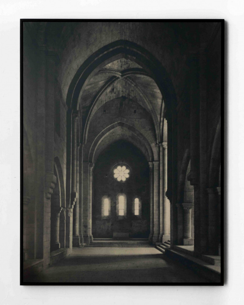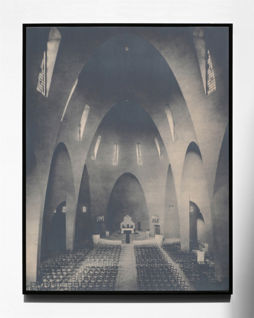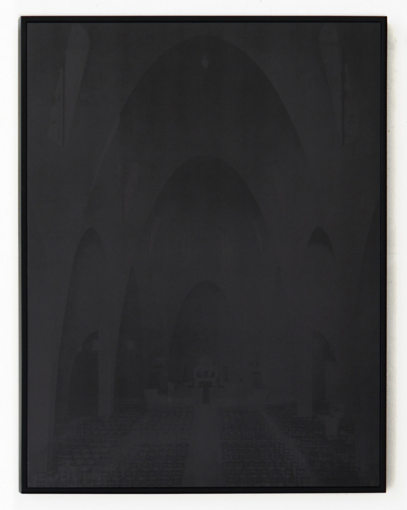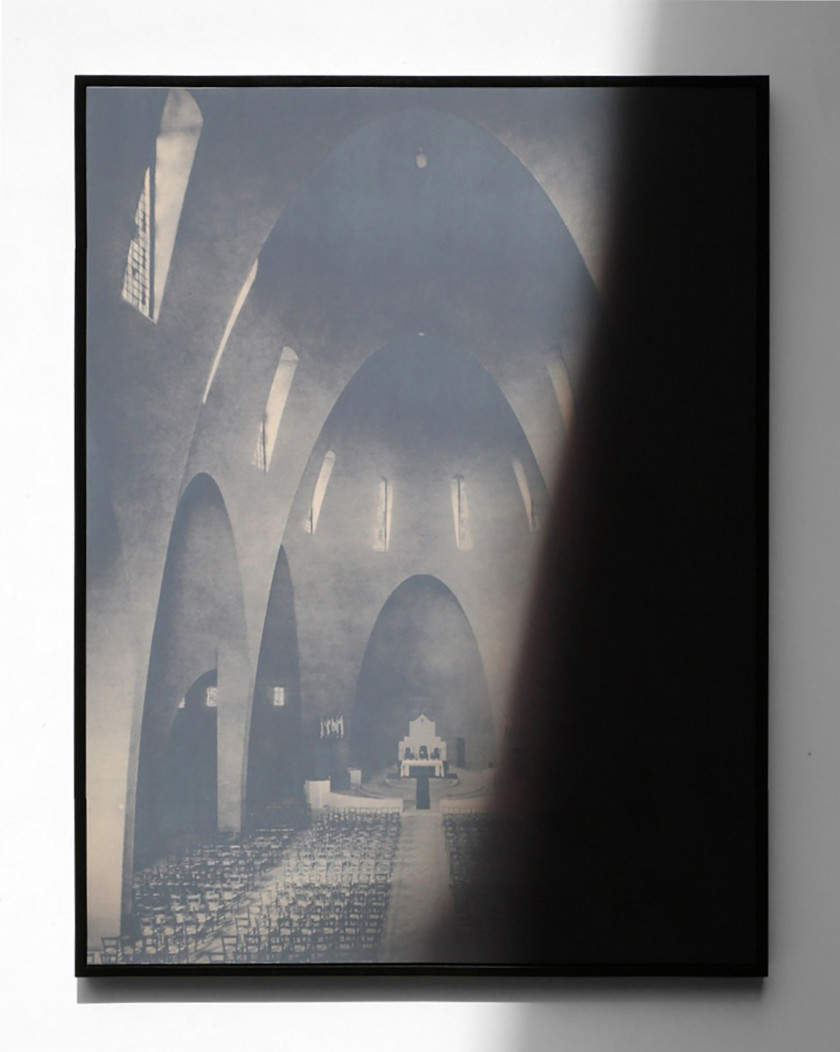 Laurence Aëgerter’s works combine appropriation, translation and poetic displacement to question the signifying power of images that unconsciously precede, follow, surround and overtake us. She investigates our realities through the prism of the human sciences, history, art history, psychology, neurology, and iconography. “Les Cathédrales” series (2014) is based on a book from the 1950s, Cathédrales et églises de France. The artist photographs one of the included images of the Gothic cathedral of Bourges in her studio through a precise protocol: every minute for two hours, Aëgerter captures the movement of the sun and the shadows cast by the windows, gradually obscuring the image until it becomes invisible. The series of 126 shots, also published as an artist’s book, engages the viewer in an exercise of contemplation and patience. “Les Cathédrales hermétiques” (2016-19) builds on the series. Aëgerter focuses on interiors, from the Romanesque cathedral of Saint-Benoît-sur-Loire to the Gothic cathedral of Coutances, to the more modern Sainte-Jeanne-d’Arc in Nice and the three Provençal sisters of Cistercian architecture: Sénanque, Silcacane and Le Thoronet. Printed and silk-screened with a thermo-reactive ink, the images are revealed in contact with the sun’s rays. The heat penetrates the material to better reveal it: the darkroom exists in broad daylight. In this tribute to Claude Monet’s majestic Cathedrals series, whose thirty motifs painted between 1892 and 1893 offer a highly plastic experience of light, Aëgerter draws on the history of art and architecture, as well as that of photographic technique. The perception of time is apprehended through a living experience of light and matter, where the fleetingness of the present moment confronts the immutability of the past.