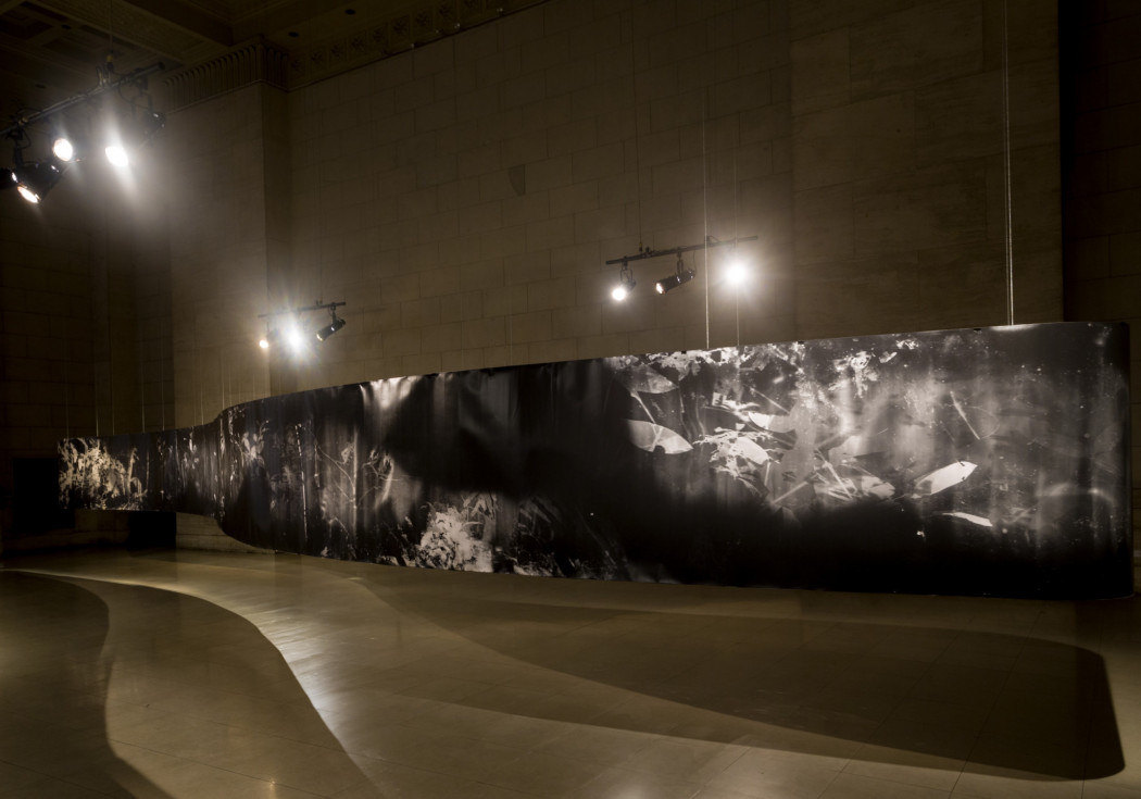 Roberto Huarcaya for OFFSCREEN features a photogram piece from the “Amazogramas” series shot at night in Bahuaja Sonene National Park, in the Peruvian jungle of Tambopata, deploying 30 meters long photosensitive paper between the dense foliage, which is printed directly to paper with a small flash light and full moon.