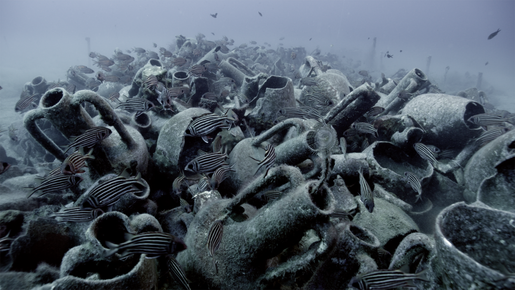 For its second edition, OFFSCREEN is dedicating an entire level of the Grand Garage Haussmann to the work Inside the Outset: Evoking a Space of Passage (2021) by Rosa Barba, which refers both to the film shot in the underwater waters of Cyprus at the site of the famous Mazotos shipwreck, and to the perennial outdoor film installation specially built to project it at the heart of the green line between Cyprus and the territories under Turkish control, recreated in the spaces of the Grand Garage Haussmann. Two others pieces will be presented : “Color Clock (Blue): Verticals Lean Occasionally Consistently Away from Viewpoints”, 2012 and “Weavers (Blue)” 2021.