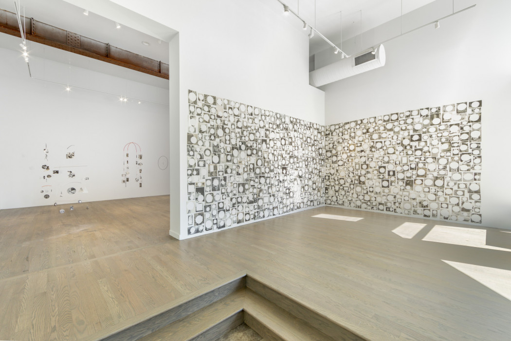 Le travail photographique de Carmen Winant utilise des techniques de collage et systèmes d’installations associés aux méthodes de fabrication artisanales : une catégorie de création qui a été historiquement reléguée à un statut inférieur à celui de l’art avec un grand “A”. Pour son exposition à OFFSCREEN, Winant développe sa série The Making and Unmaking of the World qui comprend des mobiles et des collages encadrés incorporant des photographies découpées d’ouvrages didactiques des années 1970 sur les sujets de l’artisanat (par exemple, la poterie, la fabrication de masques, le tissage, les marionnettes et la vannerie). Son exposition comprend également une installation murale, adaptée au site, The Actual World (2021), une constellation de pages de livres utilisées pour créer des mobiles. Pour la première fois dans la pratique de l’artiste, les mobiles photographiques sont des installations qui “quittent le mur”. Ces images didactiques deviennent des dessins cinétiques dans l’espace, les armatures colorées auxquelles les images sont suspendues rappelant les lignes fines et audacieuses d’une peinture de Kandinsky. Chaque composition se transforme en poèmes visuels d’instruction. En détachant les images de leur contexte d’origine, l’artiste cherche à les réinventer, elles et leur potentiel en tant qu’objets.
