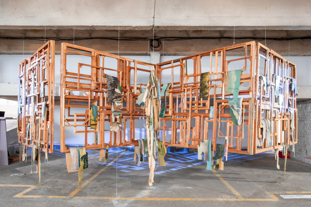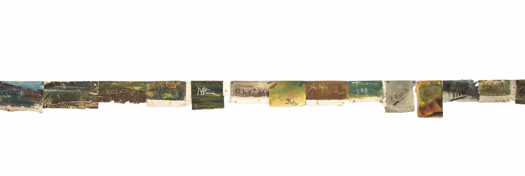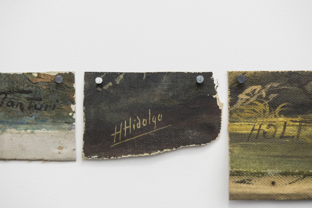 À OFFSCREEN, José Luis Landet présente “Soportar la representación” (Supporting the Representation). Il récupère et réutilise des cadres en bois qui ont servi de support à des représentations paradisiaques réalisées par différents peintres amateurs entre 1940 et 1970, pour créer une grille sur laquelle il projette des images de paysages, comme s’il renvoyait le sujet à son cadre d’origine . En étudiant les rémanences socioculturelles, l’artiste réalise des actions métaphorico-poétiques qui créent de nouvelles narrations à partir de matériaux préexistants. Pour ce travail, Landet utilise des peintures à l’huile récupérées représentant des paysages romantiques et bucoliques, généralement créés par des artistes amateurs connus sous le nom de « peintres du dimanche ». Le travail de Landet met en évidence la matérialité de ces éléments et leur mémoire, le temps et l’utilisation.