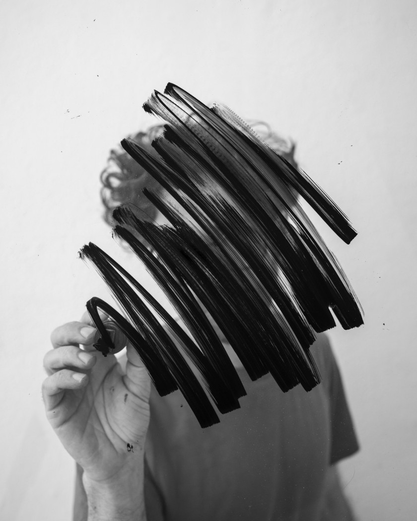 Les autoportraits de Quentin Lefranc réfléchissent sur l’enfermement, le retrait et l’impossibilité de l’image. Son visage est barré, écrasé après une tentative vaine de représentation totale, ou bien transformé en volume qui s’inscrit dans l’espace. Avec la sculpture en verre, Quentin Lefranc enferme son portrait grandeur nature, reproduisant le système de mesure du Modulor de Le Corbusier. Dans ces œuvres, il explore des aspects essentiels de sa pratique, tels que la question du vide et de l’effacement. Ces éléments nous permettent de porter un regard critique sur les différents médias utilisés par l’artiste et de réfléchir à l’emprise de notre propre corps sur l’espace.