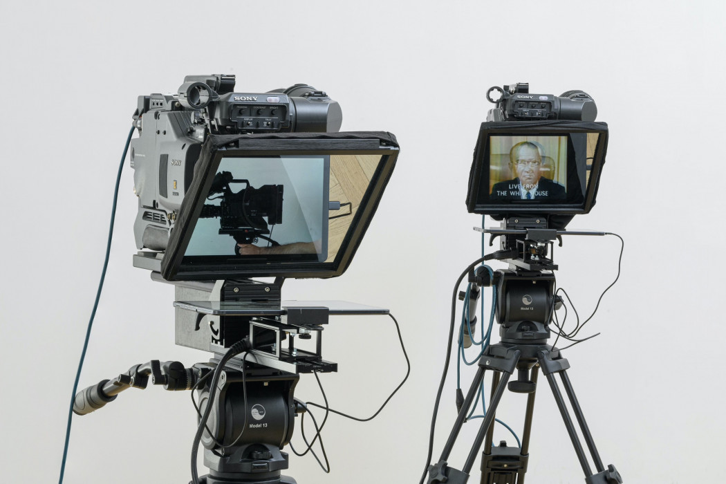 Progressivement, un appareil a été mis au point permettant aux hommes politiques et aux présentateurs de journaux télévisés de lire leurs textes avec plus de naturel. Il s’agissait au départ que de deux unités d’affichage placées de part et d’autre d’un podium, des bandes de papier défilant verticalement, mais l’orateur devait toujours tourner légèrement la tête de gauche à droite et de droite à gauche pour lire. Puis, le rouleau de papier a été remplacé par un miroir placé directement devant l’objectif de la caméra, reflétant un texte projeté à partir d’un autre écran incliné horizontalement. Cette configuration permettait à l’orateur de créer l’illusion d’un contact visuel.