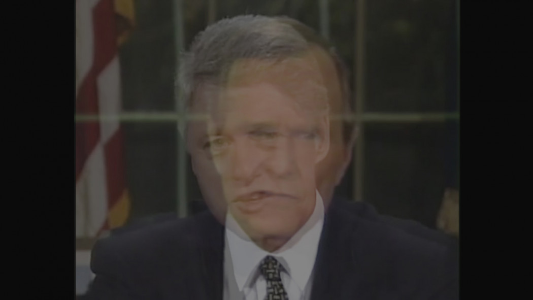 Les visages de plusieurs présidents des Etats-Unis (de 1947 à 1997) sont superposés dans l’œuvre à la manière d’un palimpseste. Bill Clinton ferme la danse commencée par Truman, et lit, dans une verticalité complète, son discours à l’aide d’un téléprompteur. En plus de produire une étude historique, Belleau produit un inventaire des gestes ineffaçables et étudie ainsi la relation historique entre le téléprompteur et la biopolitique.